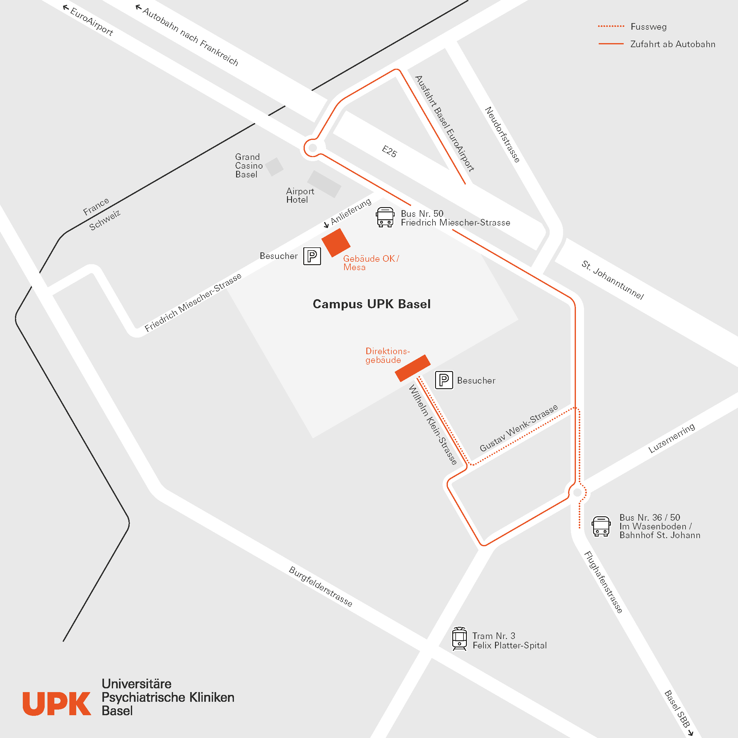 Anfahrt UPK Basel Campus